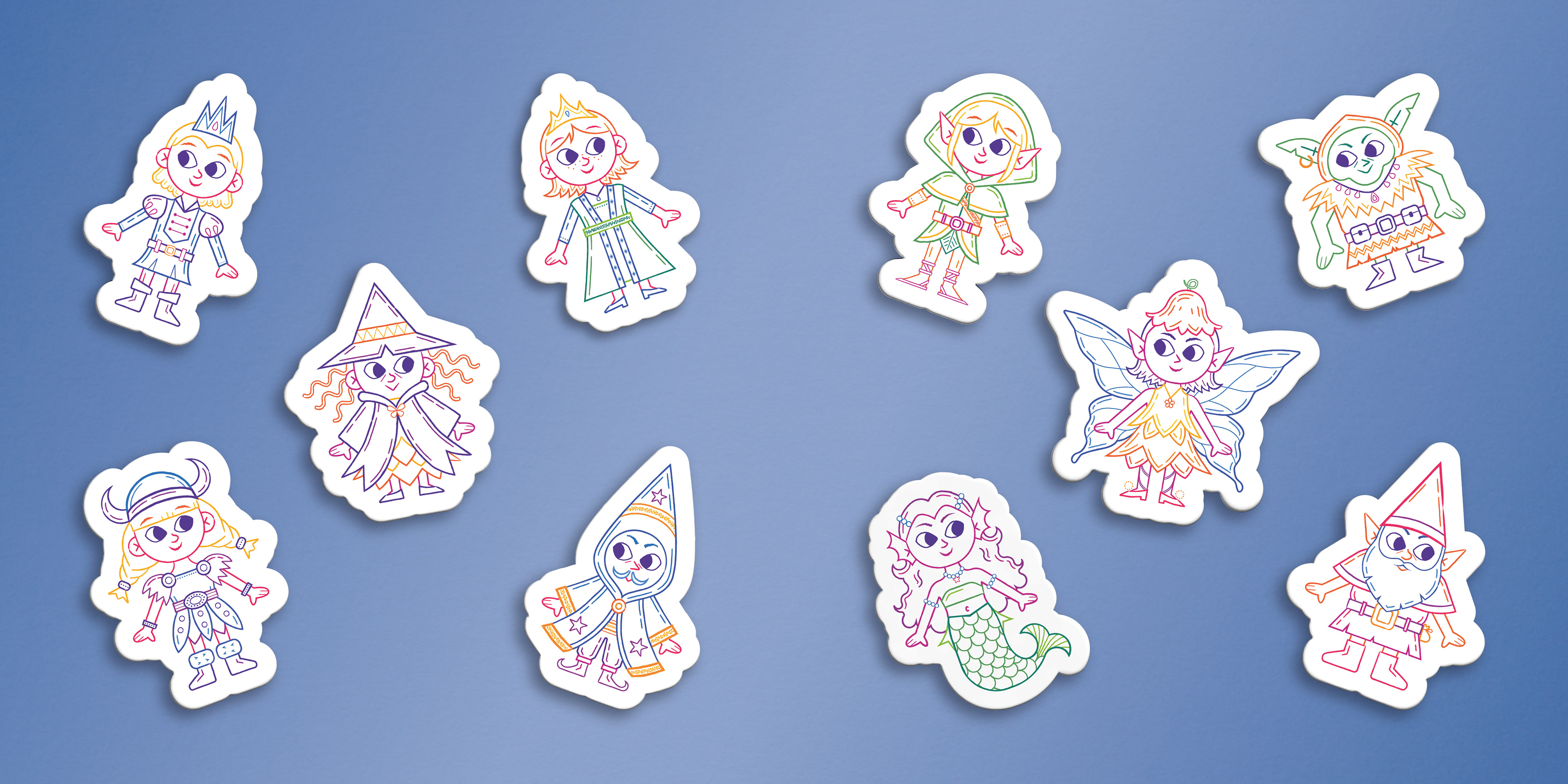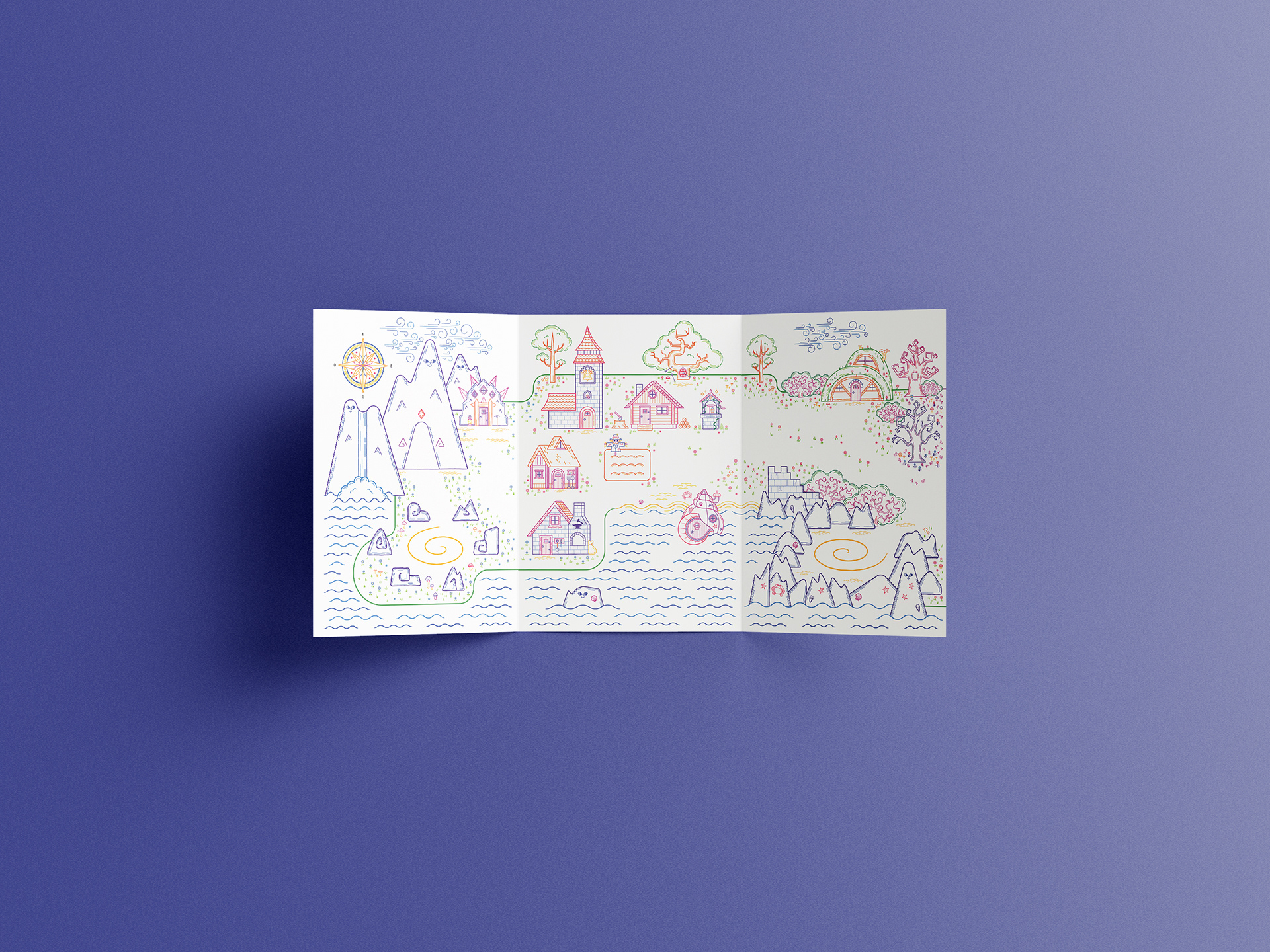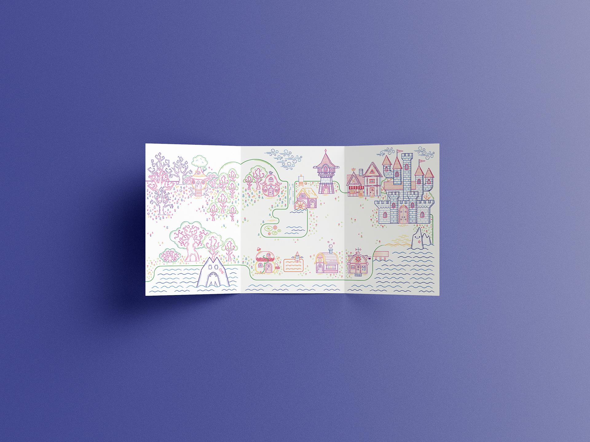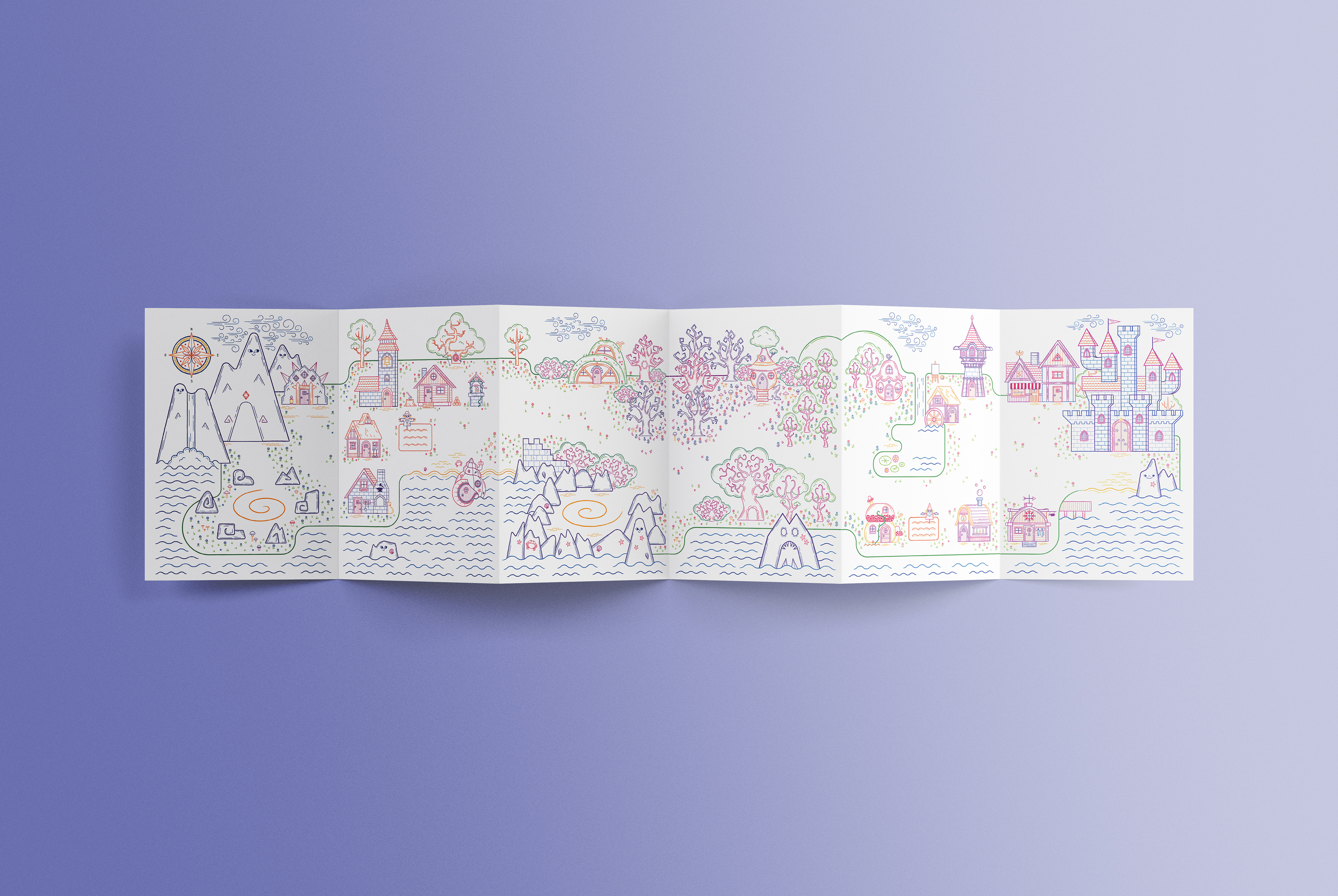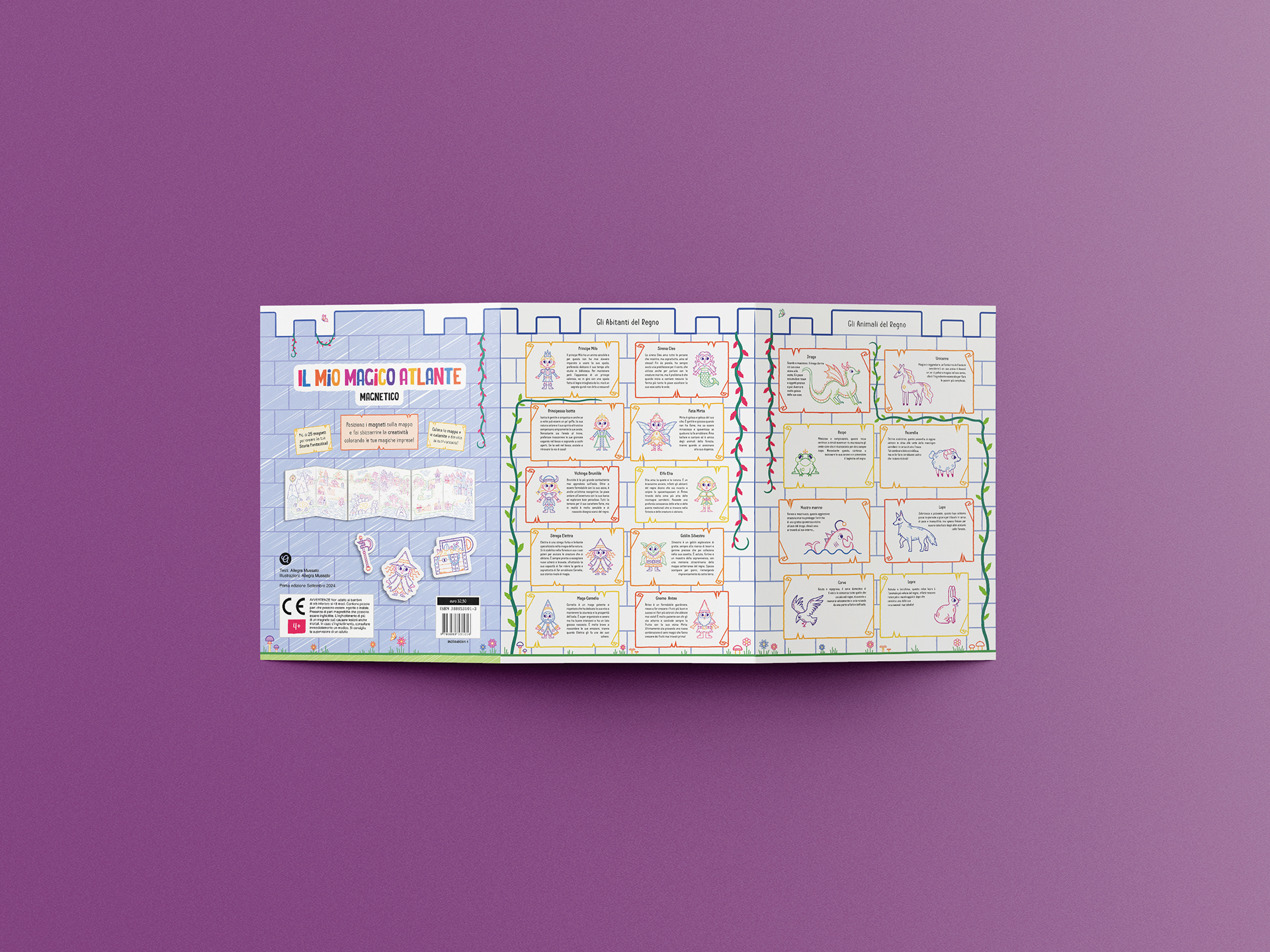 Born from the desire to replicate the freedom of drawing on my walls, the project's core mission is to stimulate storytelling and coloring creativity in children aged 4+. This magnetic leporello offers a customizable, endless game where children can color and manipulate magnetic characters on a fantastical map.